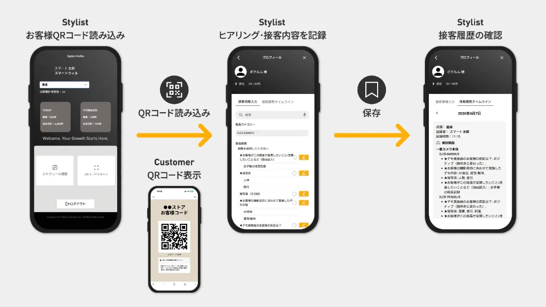 スマートウィルはこの問題を解決するため、スタイリストが接客中に記録を残すことのできる専用アプリを開発しました。このアプリは、接客をデジタル化し、蓄積したデータを分析することによって「顧客インサイト」を得ることを目的としています。