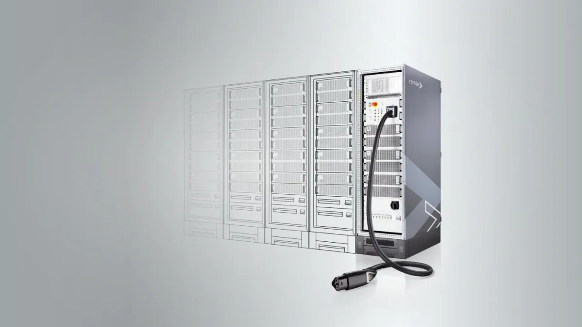 新システムは、ベクターの幅広いE-モビリティ向けソリューションの一部として統合可能です。特に、30kWの双方向DC電源を持つ充電通信テストシステム「vCTS」は、MCSを含むすべての主要充電規格に対応し、柔軟に構成を変更できます。このようにして、さまざまな充電テストに迅速に対応する利点があります。
