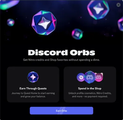 Orbsは、広告を視聴することで得られるバーチャル通貨の一種で、これによりDiscord上でより充実した体験を享受することができます。ユーザーはOrbsを使って、Nitroクレジット、限定プロフィールバッジ、エフェクト、アバター装飾など、さまざまな特典と交換可能です。また、特別なアイテムやショップコレクションもOrbsを通じて入手できるため、プレイヤーにとって魅力的な要素が増えます。