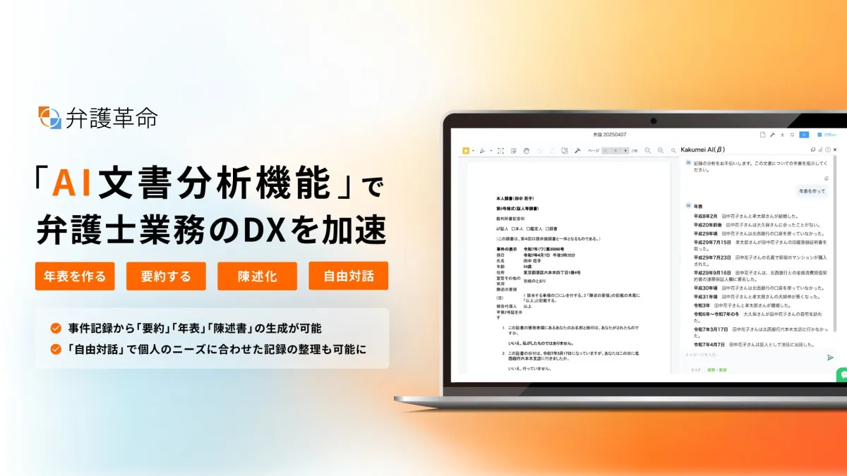 弁護士ドットコム株式会社が提供する『弁護革命』は、弁護士向けのデジタル文書活用ツールとして、その機能が革新されています。最新のアップデートでは、生成AIを活用した「AI文書分析機能」が新たに追加され、弁護士業務の効率化を図ることが可能になりました。