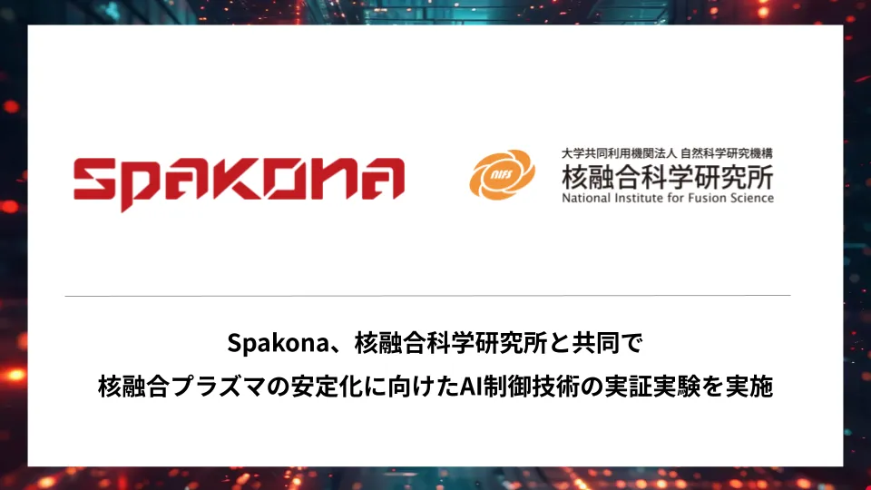 株式会社Spakona(代表取締役:河﨑 太郎)は、自然科学研究機構核融合科学研究所(NIFS)と連携し、核融合プラズマの安定化に向けたAI制御技術の実証実験を行いました。これは、プラズマが不安定になり消失する放射崩壊の予測をAIに行わせ、その可能性を探るものであり、研究成果が期待されます。