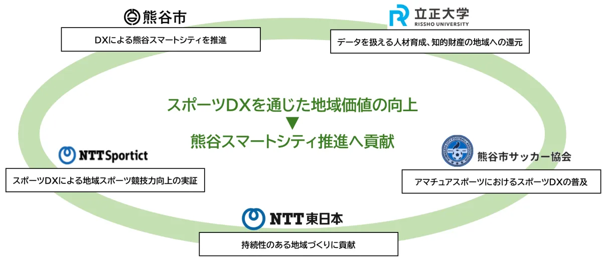 埼玉県熊谷市は、立正大学データサイエンス学部、熊谷市サッカー協会、NTT東日本、NTTSportictと連携し、「産学官連携による映像分析を用いた地域スポーツ活性化に関する共同研究協定」を締結しました。これは2025年1月17日のことで、地域のスポーツ振興を目指す重要なステップとなります。