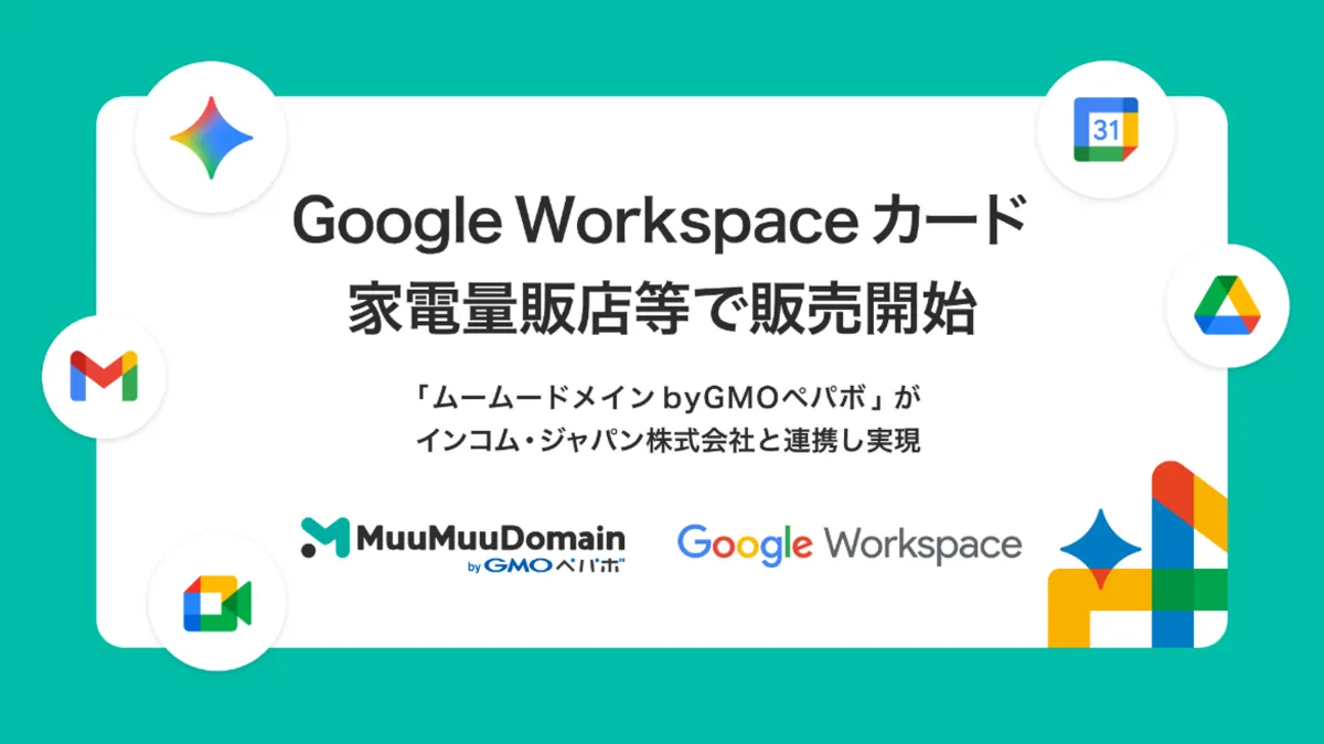 2025年11月18日より、GMOペパボ株式会社が提供する「ムームードメイン byGMOペパボ」が、インコム・ジャパン株式会社との提携により、Google Workspaceカードを販売することを発表しました。このカードは、企業や事業者が手軽にGoogle Workspaceを導入できることを目的としており、全国の主要家電量販店で購入可能です。