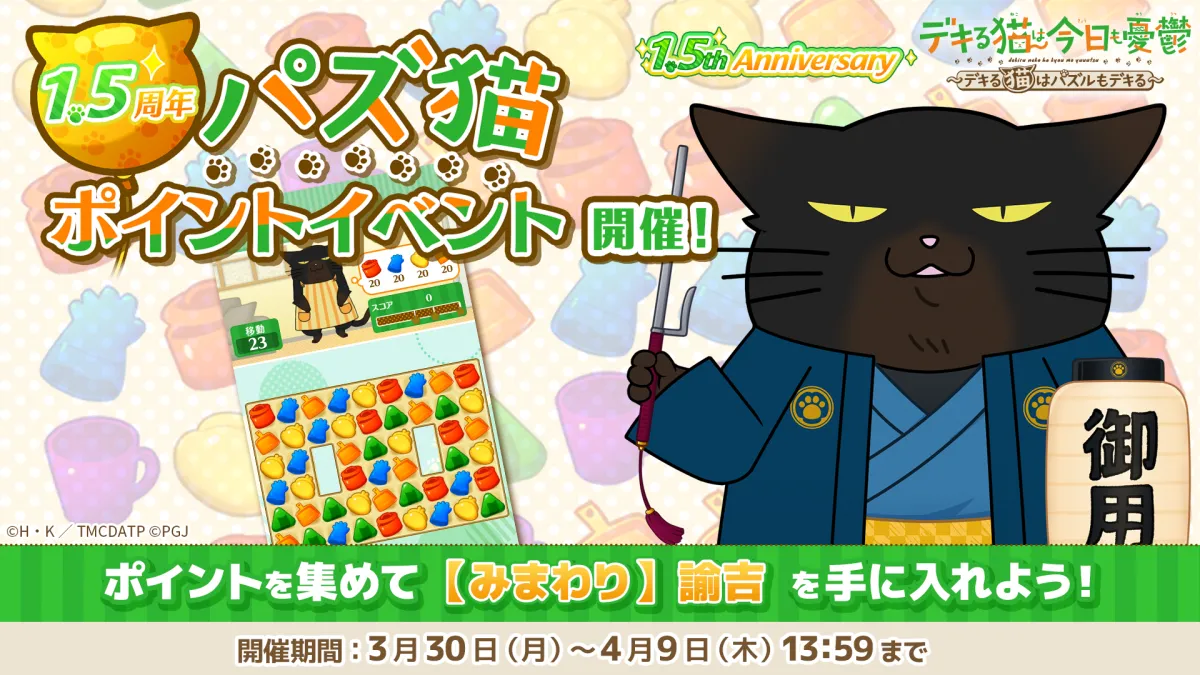 2024年の秋にリリースされたスマートフォンゲーム「デキる猫は今日も憂鬱〜デキる猫はパズルもデキる〜」、通称パズ猫。このゲームは、人気アニメ「デキる猫は今日も憂鬱」をベースにした3マッチパズルゲームで、多くのファンから支持を受けています。現在、1.5周年を記念して、特別なイベントが開催されており、さまざまな報酬を手に入れるチャンスが提供されています。