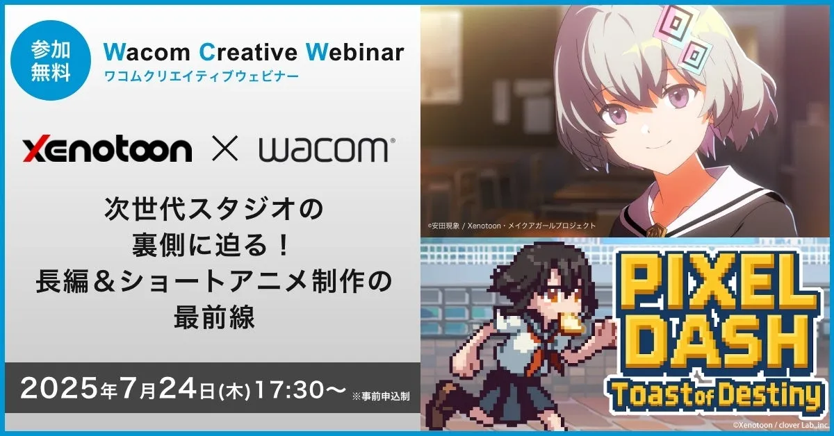 株式会社ワコムは、実力派アニメスタジオ・ゼノトゥーンとの共催で、2025年7月24日(木)17:30から「Wacom Creative Webinar」を開催します。このオンラインイベントでは、アニメの最前線に迫り、魅力的な情報を無料でお届けします。事前の申し込みが必要ですが、参加は料金が発生しません。