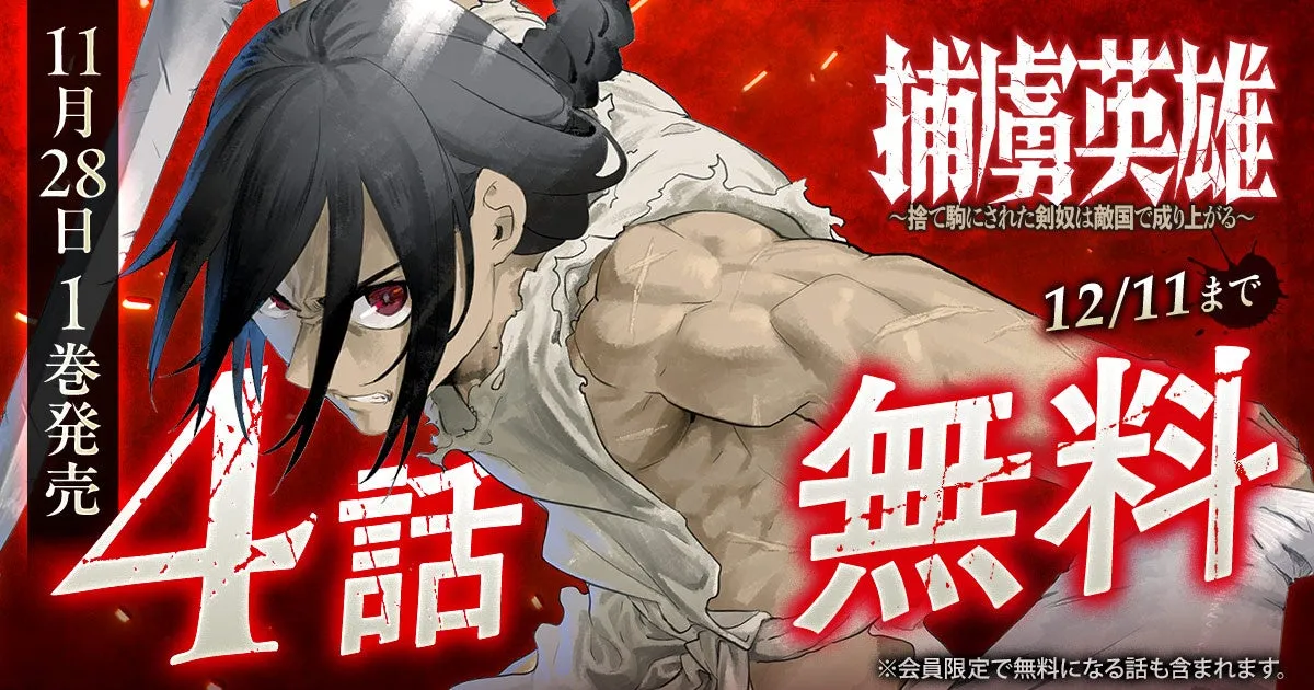 漫画『捕虜英雄 ~捨て駒にされた剣奴は敵国で成り上がる~』の一巻が、会員向けに無料で読めるキャンペーンを開催中です。このキャンペーンは「ヤングアニマルWeb」にて実施されており、12月11日までの期間限定ということですので、興味のある方はお早めにご利用ください。