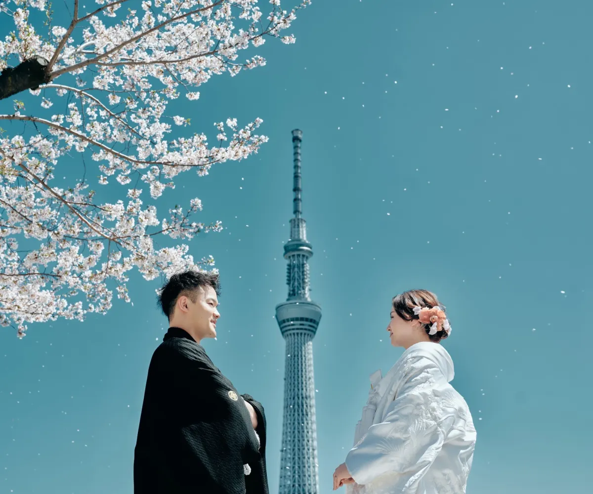 特に、トップウエディングフォトグラファー部門で1位に輝いたのは石橋英祐さんです。彼の作品は、ただの結婚式の記録を超え、アートとしても楽しめるものに仕上げられています。石橋さんが撮影したのは東京の浅草エリアで、桜の開花シーズンに東京スカイツリーを背景にしたロケーションフォトです。