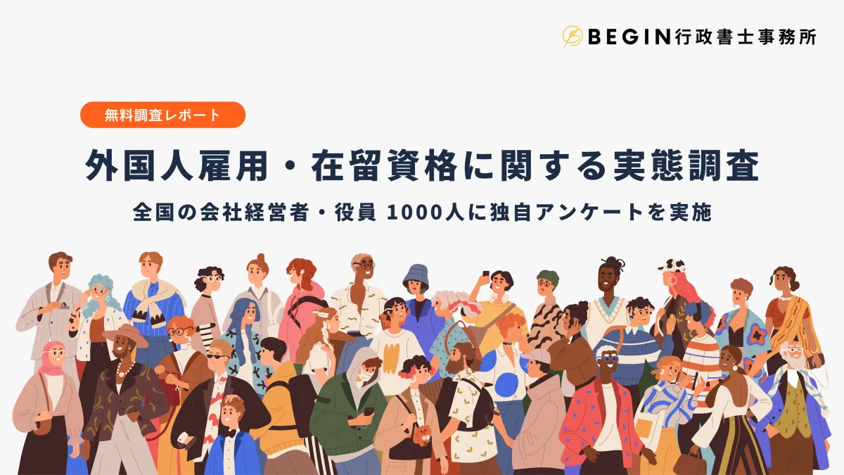 調査結果をまとめた「外国人雇用・在留資格に関する実態調査レポート」は、BEGIN行政書士事務所の公式サイトから無料でダウンロード可能です。興味のある方はぜひご覧ください。