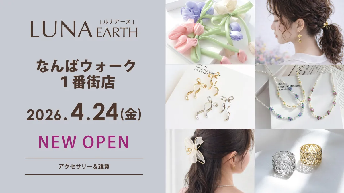 大阪市中央区にあるなんばウォーク1番街に、プチプラアクセサリーブランド「LUNA EARTH」が2026年4月25日に新たにオープンします。このお店では、330円(税込)から手に入る多数の魅力的なアクセサリーが揃っており、ビーズやアクセサリーパーツの製造・販売を手掛ける株式会社エンドレスが運営しています。