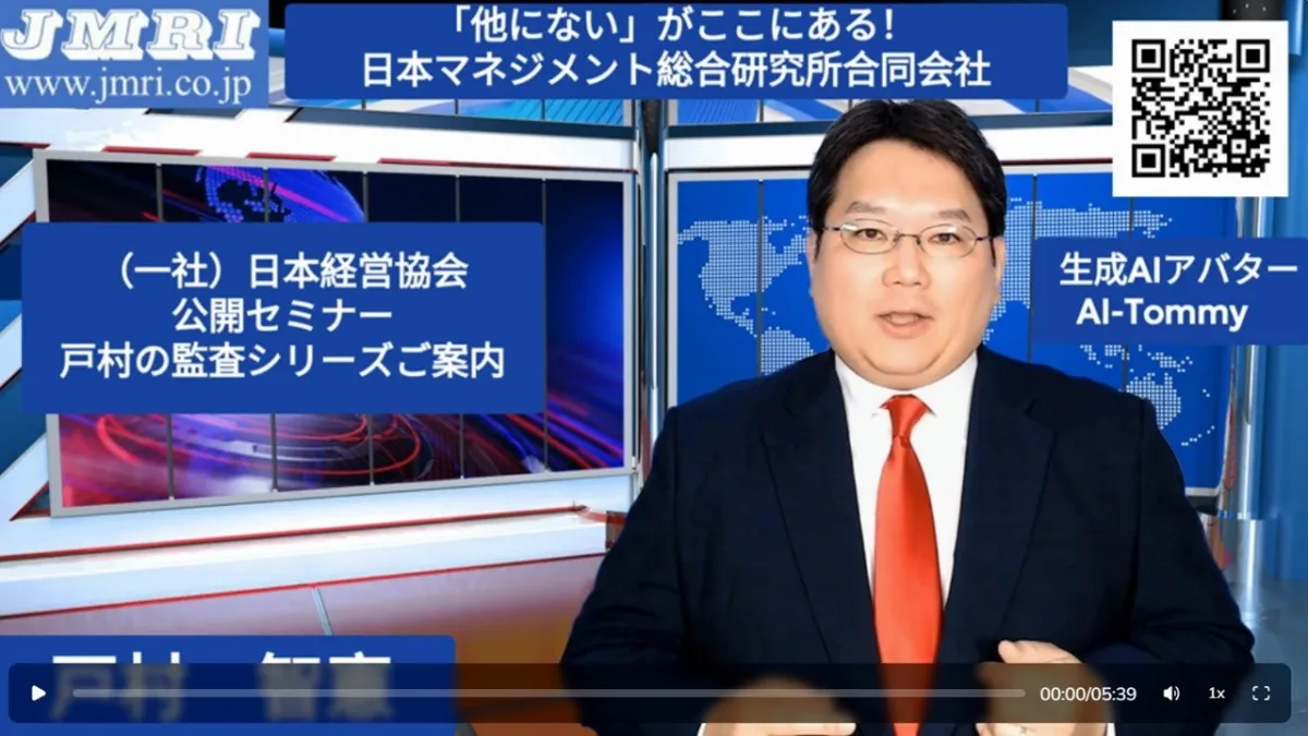 日本マネジメント総合研究所による革新的なセミナーがついに始まります。その名も「戸村の監査六部作」。このセミナーは、理事長であり監査のエキスパートである戸村智憲氏が監修し、生成AIアバター「AI-Tommy」が参加者に向けて情報を提供します。これは単なるセミナーではなく、最新のテクノロジーを駆使した新たな学びのスタイルを提案するものです。