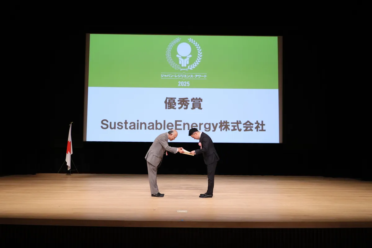 SustainableEnergy株式会社が「レジリエンスジャパンアワード2025」で優秀賞を受賞