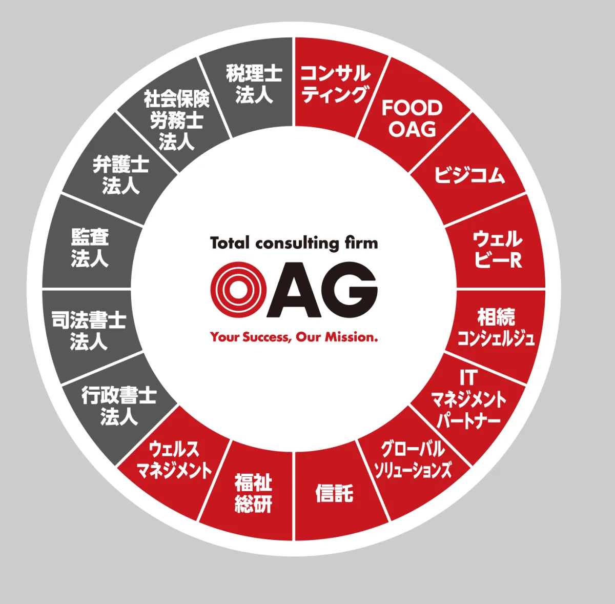 OAGグループは、6つの士業法人と10の株式会社を運営しています。「お客様の最良のパートナー」をモットーに、企業の複雑な経営課題や財産問題への対応力を高めています。2026年には350億円を超える預かり資産を持ち、さらに信頼性の高いサービスを提供することで顧客満足度を高めていく考えです。