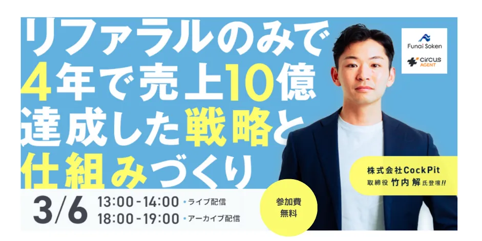 株式会社CockPitは、設立から4年という短い年月で売上高を10億円に達成した。この度、彼らは、その成果を収めるまでの道のりと、採用手法として注目されている「リファラル採用」の魅力を解説するオンラインセミナーを開催する。このセミナーでは、取締役の竹内解氏による成功事例の紹介や、船井総合研究所の田原康博氏による市場をリードする差別化戦略の解説が行われる。