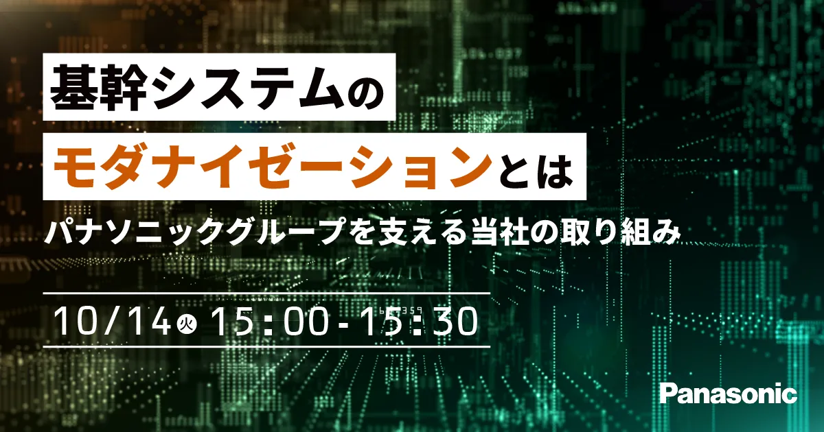 2025年10月14日(火)、パナソニックインフォメーションシステムズ株式会社が特別なウェビナーを開催します。このセミナーのテーマは「基幹システムのモダナイゼーションとは~パナソニックグループを支える当社の取り組み~」です。しっかりとした基盤を持つ企業グループであるパナソニックが、どのようにして自身のシステムを進化させているのかを知る貴重な機会となります。