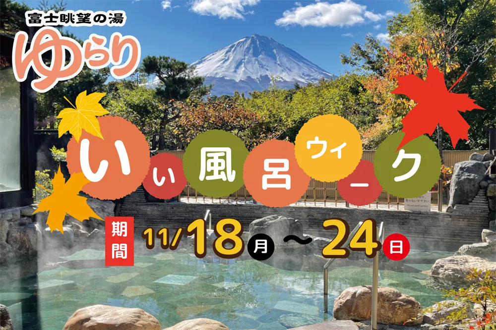 山梨県鳴沢村の標高1,000mに位置する日帰り温泉施設「富士眺望の湯ゆらり」では、2024年11月26日“いい風呂の日”にちなんだ特別企画「いい風呂ウィーク」を開催します。