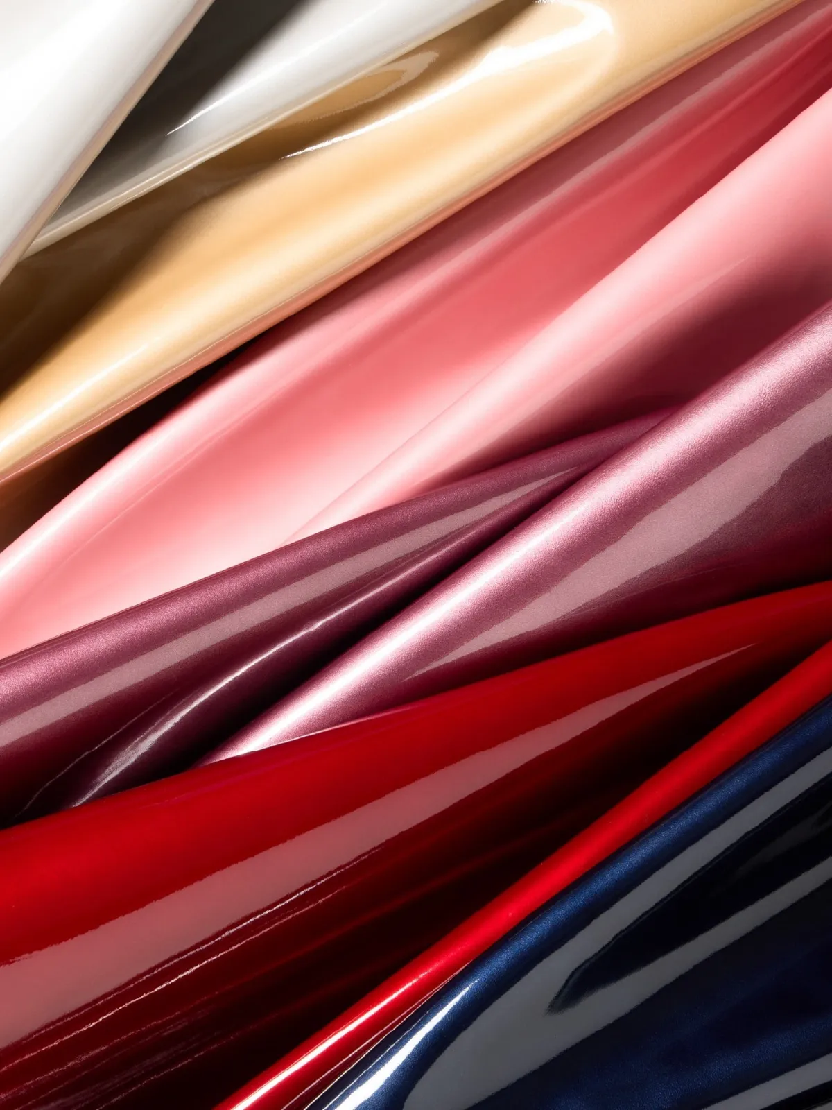 Coco Doullensが使用しているエナメルレザーは、スペイン産のヘアシープをイタリアで加工したもので、その質感は軽く柔らかいのが特徴です。カラーごとに異なる下地を施し、透明層の効果で色合いが浮かび上がる仕様になっています。色合いは、濃色の場合はブラックが使われ、淡色にはクリームの下地が用いられています。これにより、光の当たり具合で異なる発色が楽しめる、深みのある仕上がりが実現されています。