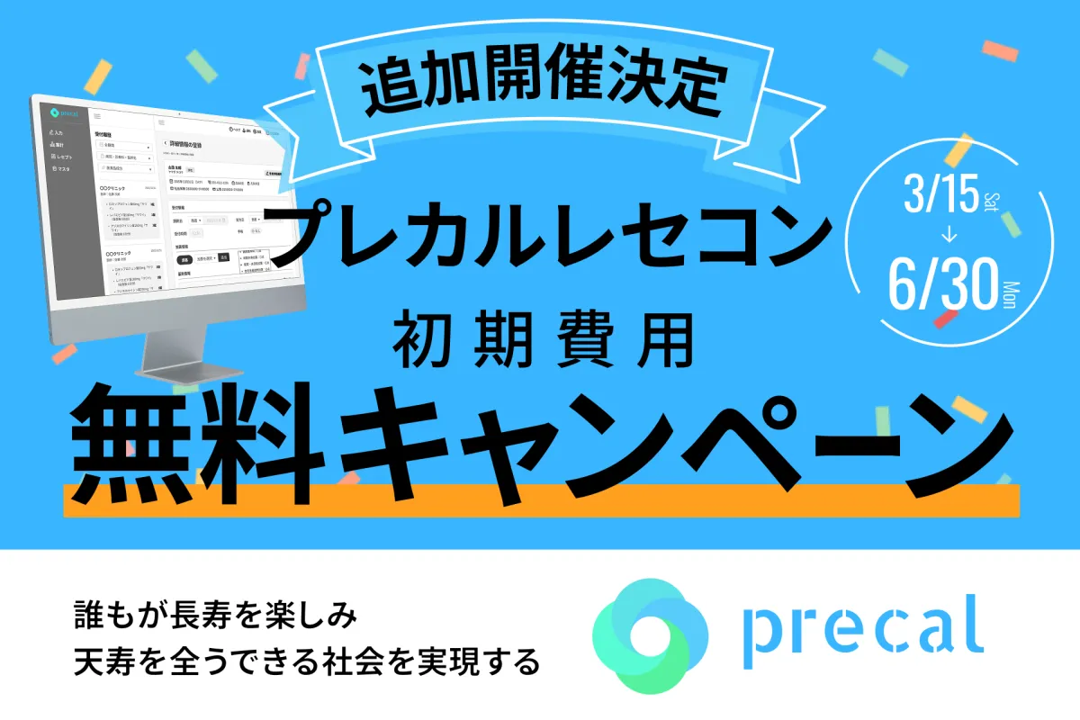 追加開催されるキャンペーンは、2025年3月15日から6月30日までの期間で実施されます。この期間中に「プレカルレセコン」を導入した薬局は、初期費用が無料で利用できます。