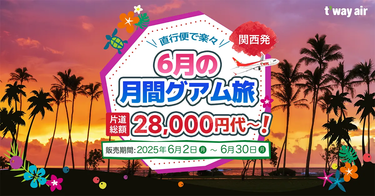 韓国発のLCCであるティーウェイ航空が、2020年より運休していた関西(大阪)-グアム線の運航を2025年7月18日(金)から再開することを発表しました。この運航再開により、多くの旅行者にとって便利で手軽なグアムへのアクセスが復活します。