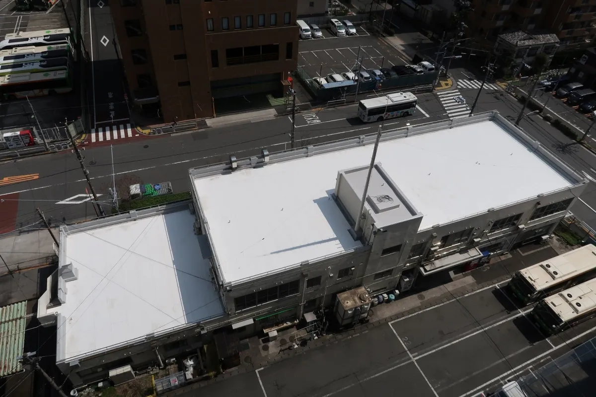 この実験では、SPACECOOL防水シート(現在の名称:イノベーションプルーフRR)を品川自動車営業所の屋上に施工し、従来の防水シートと比較して使用電力量を検証しました。実施期間は令和6年の5月1日から9月30日までです。