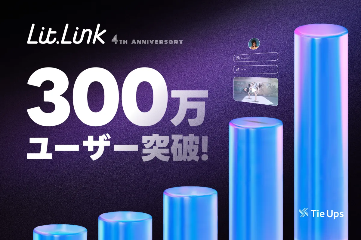 TieUps株式会社が提供する「lit.link」は、リリースから4年を迎え、累計ユーザー数が300万人に達しました。スマートフォン一つで、SNSアカウントやオンラインショップのリンクを一つのページにまとめることができるこのサービスは、特に若い世代から支持されています。