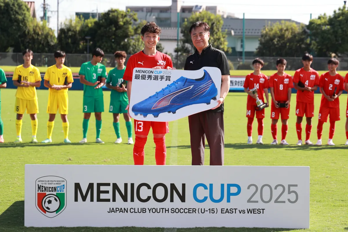 最優秀選手賞(MVP)は、ALL WESTキャプテンの花元誉絆選手(ヴィッセル神戸U-15)に授与されました。試合後、彼は「歴史のあるメニコンカップに参加できたことを感謝しています。このチームのキャプテンとして中心になれるよう意識しました。MVPに選ばれ、とても嬉しいです」と述べました。さらに、プロサッカー選手として日本代表を目指す決意も熱く語り、「海外でも圧倒できる存在になりたい」と力強いメッセージを送りました。