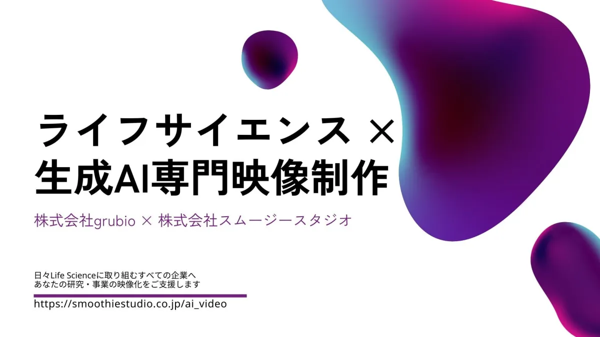株式会社grubio(東京都渋谷区)と株式会社スムージースタジオ(東京都品川区)の間で、戦略的な事業提携が結ばれました。この提携により、ライフサイエンス分野に特化した「ライフサイエンス×生成AI専門映像制作」サービスが開始されることとなりました。新しいサービスは、ライフサイエンスの専門知識と生成AIの先端技術を融合させ、研究成果や製品の魅力を映像で伝えることを目的としています。