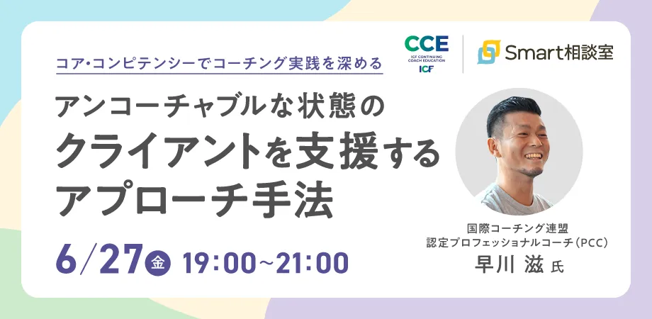 株式会社Smart相談室は、2025年6月27日(金)19時から「コア・コンピテンシーでコーチング実践を深める!アンコーチャブルな状態のクライアントを支援するアプローチ手法」というオンラインプログラムを開催します。これは、コーチングの質を高めるための実践的な手法を学ぶことができる貴重な機会です。