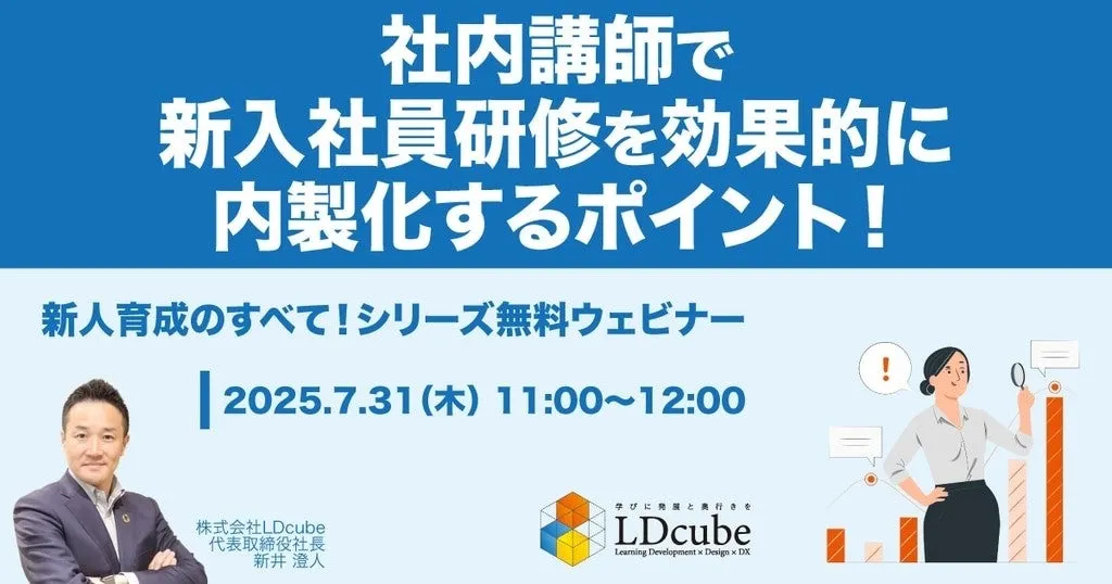 2025年7月31日、株式会社LDcubeが新入社員研修に特化したウェビナーを実施します。このイベントは、社内講師を用いた新入社員研修の重要性を引き出し、効果的な内製化を目指すものです。最近の調査によると、多くの企業が新入社員の定着や即戦力化に苦戦していることが明らかになっています。LDcubeは、研修実施の方法として社内講師による実施が最も効果的であることを示しており、特にその方法を詳しく解説する予定です。