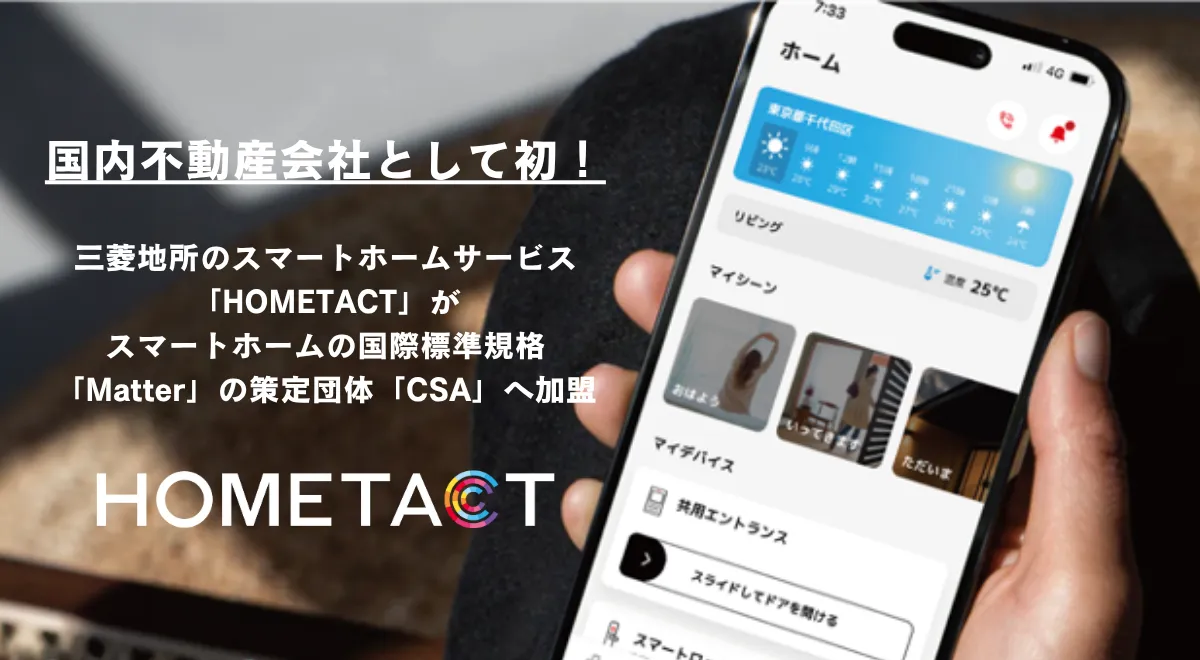三菱地所株式会社の提供する総合スマートホームサービス「HOMETACT」が、スマートホーム分野における国際的な標準規格「Matter」の策定団体、Connectivity Standards Alliance(CSA)に加盟しました。この加盟は、日本国内の不動産会社として初の試みとなります。