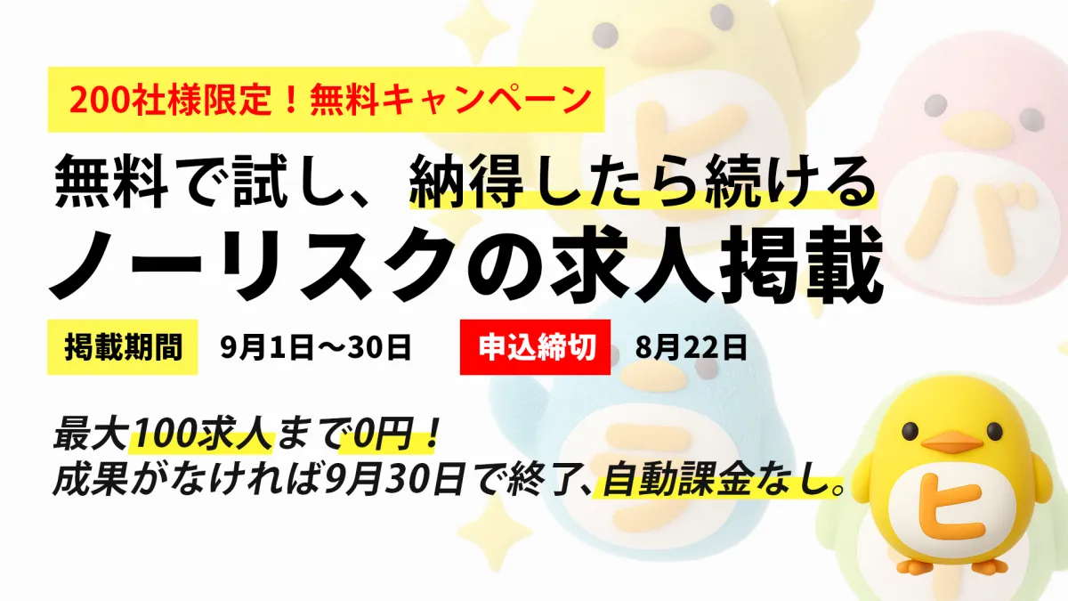 このキャンペーンは、多くの企業に手軽に利用してもらうためのもので、9月1日の開始から29日間、掲載料は無料となります。ただし、無料申込の締切は2025年8月22日で、200社までとなっているため早めの申し込みが必要です。自動的に課金は行われず、キャンペーン終了後は企業側の判断で継続するかどうかを選べます。