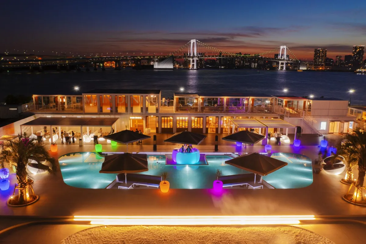 さらに、キラナガーデン豊洲の「リゾート同窓会プラン」は、最大40名までのグループが、冷房完備のプライベートな空間で楽しめる1棟貸切のプランです。特別にデザインされたCABINを利用し、参加人数が増えるほど、料金もお得に設定されるため、リユニオンやパーティー、各種イベントに最適です。
