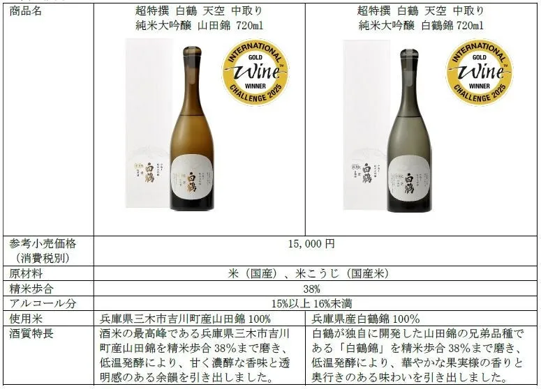 2025年の国際的な酒類品評会「IWC(インターナショナル・ワイン・チャレンジ)」によって、白鶴酒造株式会社の代表的な製品が評価されました。特に「超特撰 白鶴 天空 中取り 純米大吟醸 山田錦」と「同 白鶴錦」が、SAKE部門の純米大吟醸カテゴリーで見事ゴールドメダルを受賞しました。これは、白鶴酒造の長年の努力と技術が結実した結果であり、お酒業界にとっても大きな喜びです。