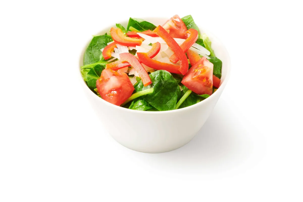 リニューアルされた「こだわりサラダ 和風ドレッシング<減塩タイプ>」は、キャベツ、レタス、トマト、オニオンといった新鮮な野菜に加えて、赤パプリカとサラダほうれん草が彩りを添えています。これに加え、減塩和風ドレッシングは、醤油ベースにかつお節や昆布の旨みが加わり、オニオンの風味が溶け込んでいます。すっきりとした味わいが特徴で、ぜひ試してみてほしい逸品です。
