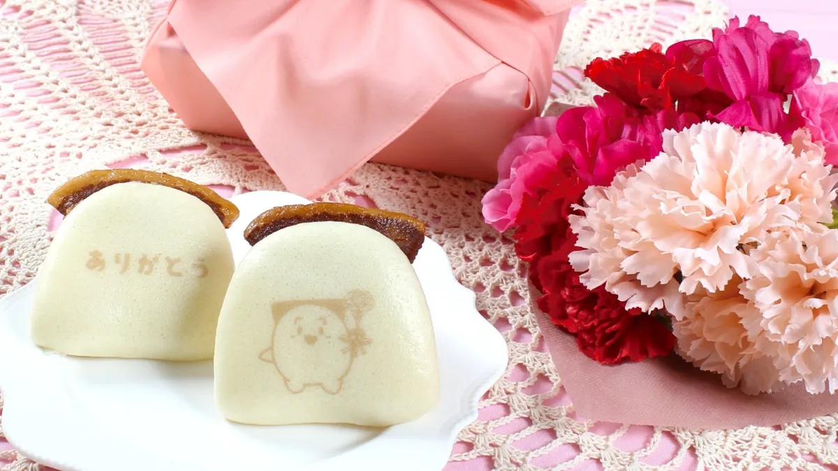 感謝を伝えるのは時に恥ずかしいものです。そんな方にぴったりなのが「特別印付き」の角煮まんじゅう。生地には「ありがとう」の文字と岩崎本舗のオリジナルマスコットキャラクター「角煮まんじゅうちゃん」がプリントされており、思いをさりげなく届けます。角煮まんじゅうちゃんが花を持っているデザインは、言葉だけでは伝えられない気持ちをしっかりとサポートします。