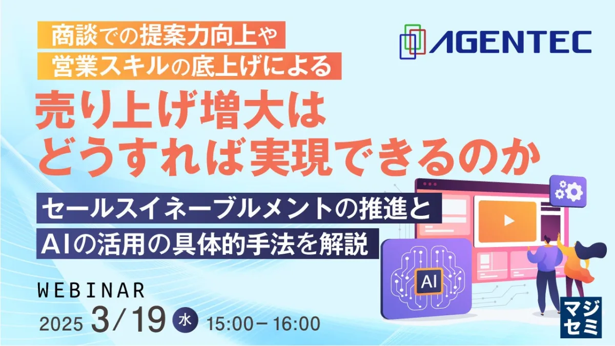 最近、多くの企業が新入社員や中途入社のスタッフの育成に力を入れているものの、教育業務を担当する者は他に営業目標を抱えながら行っているケースが目立ちます。このような中で、効率的な営業教育を実現し、商談の成功率を高めるための方法を探るウェビナーが開催されます。