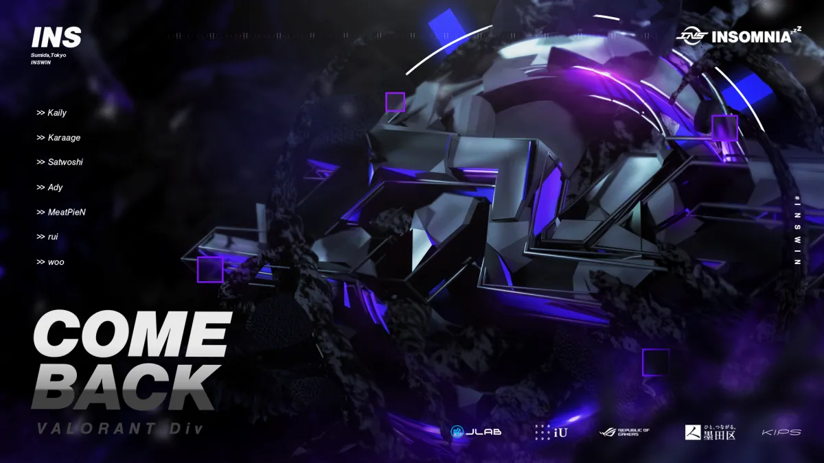 INSOMNIAは、東京都墨田区を拠点とする、プレイヤーとファンが共に成長していくことを目指すeスポーツチームです。新たに設定されたVALORANT部門の選手たちは、今後「VALORANT CHALLENGERS JAPAN SPLIT 1」での活躍を目指し、しっかりとメンバーを固めました。
