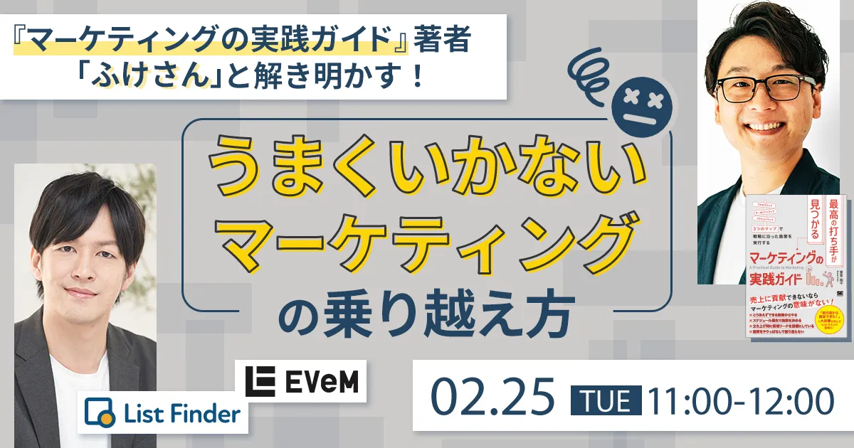 2025年2月25日(火)、東京都渋谷区で『最高の打ち手が見つかるマーケティングの実践ガイド』の著者、富家翔平氏(愛称:ふけさん)を迎えたセミナーが開催されることが決まりました。このセミナーでは、特に「うまくいかないマーケティング」を克服するための具体的な手法と実践のコツが紹介されます。
