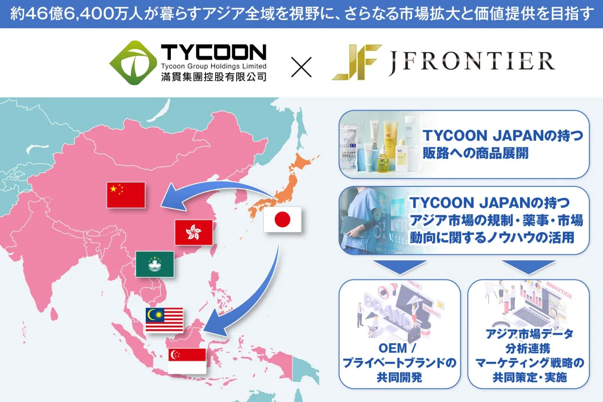 ジェイフロンティア株式会社は、2025年8月15日にTYCOON JAPAN社との業務提携契約を締結しました。この提携の目的は、両社の強みを活かしアジア市場への事業展開を加速させることです。