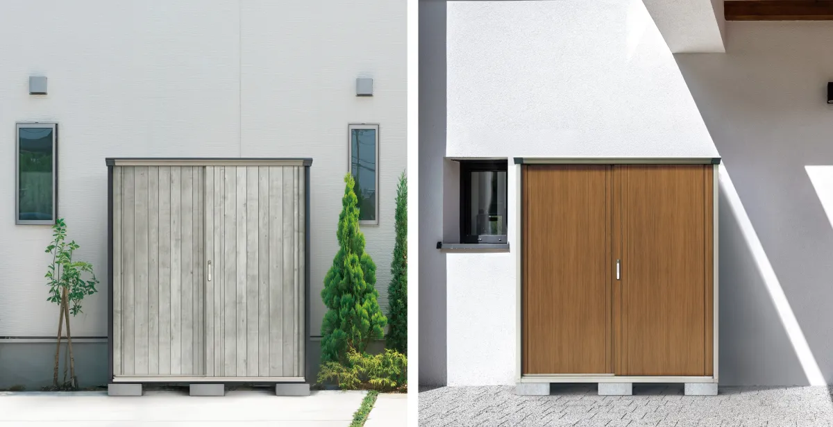 新しい「PEINTE」物置は、住宅の外観と調和するようにデザインされています。特に、人気の高い窯業系サイディングや金属サイディング、木質系の外観デザインが各種採用されており、それぞれの特性を活かした魅力的な仕上がりとなっています。