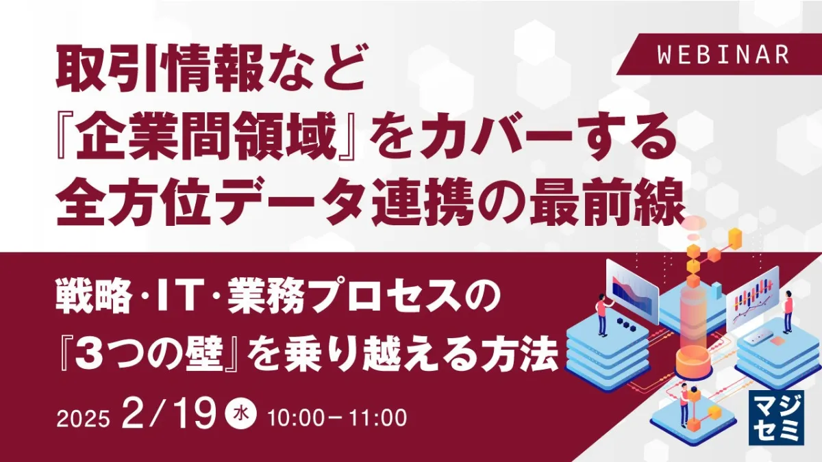 最近のビジネス環境において、企業が成功するためにはデータの利活用が不可欠です。そこで注目されるのが、企業間のデータ連携です。これは、企業が社内外に散在するデータを連携させることで、より戦略的なビジネスの展開を可能にする手法です。これらのテーマを取り上げたウェビナーが開催されます。