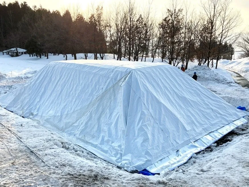 「ゆきむろシート」は、独自の構成で作られた特殊なシートです。具体的な成分は開示されていませんが、高い断熱性と低重量が特長とされています。これにより、雪を外気から守り、長期間にわたってその状態を維持することが期待されています。また、軽量化が進むことで、取り扱いがより簡単になることも目指しています。