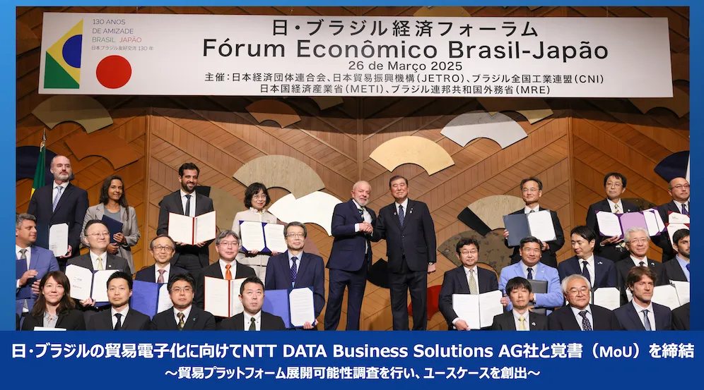 この覚書締結は、ルーラ・ブラジル大統領が国賓として日本を訪問した際に挙行された日・ブラジル経済フォーラムの中で正式に発表されました。このフォーラムでは、日・ブラジルの企業間のさらなる協力の重要性が強調され、両国首脳とともに記念撮影も行われました。本事業の開始は、貿易のデジタル化に向けた第一歩と位置づけられています。