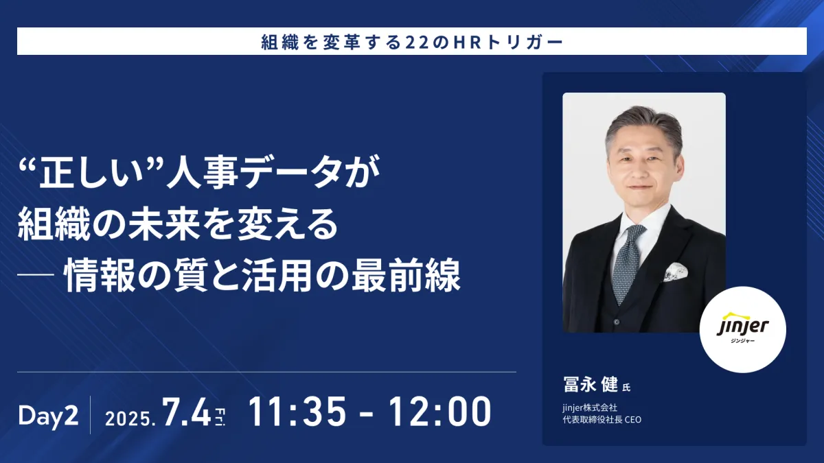 しかし、実際に多くの企業が人事データの活用に課題を抱えており、明確な指針がないまま日々の業務に取り組んでいる場合がほとんどです。たとえどれだけのデータが蓄積されていても、そのデータが正確でなければ誤った判断に繋がる恐れがあります。冨永氏はこの問題に対して、「正しい人事データとは何か?」を考察し、データの質がどのように意思決定や組織戦略に影響を与えるかを現場のリアルな事例を通じて解説します。一般的なデータの扱い方ではなく、人事データを企業成長の資産として活用する方法を提案しています。