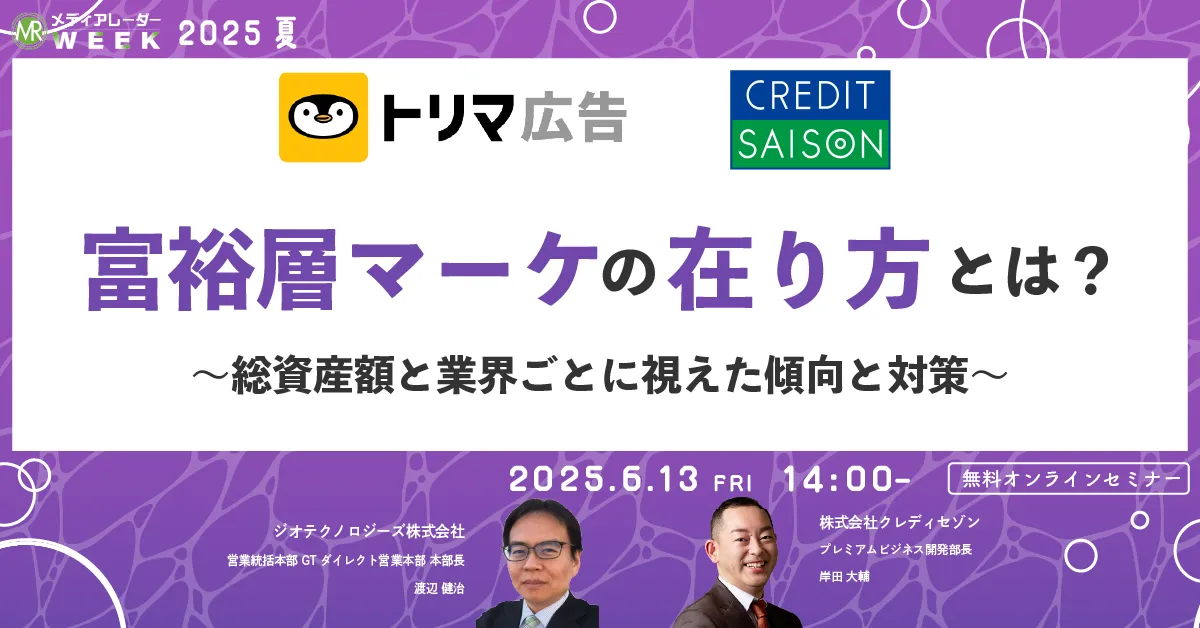 株式会社アイズが運営する広告業界向けプラットフォーム「メディアレーダー」が主催する「第18回メディアレーダーWEEK 2025 夏」が、6月13日(金)にオンラインで開催されます。このセミナーでは、現代の富裕層に向けた新たなマーケティング戦略に焦点を当て、さまざまな分野の専門家が登壇します。視聴は無料で、先着200名が申し込めます。興味のある方はお早めに申し込むことをおすすめします。