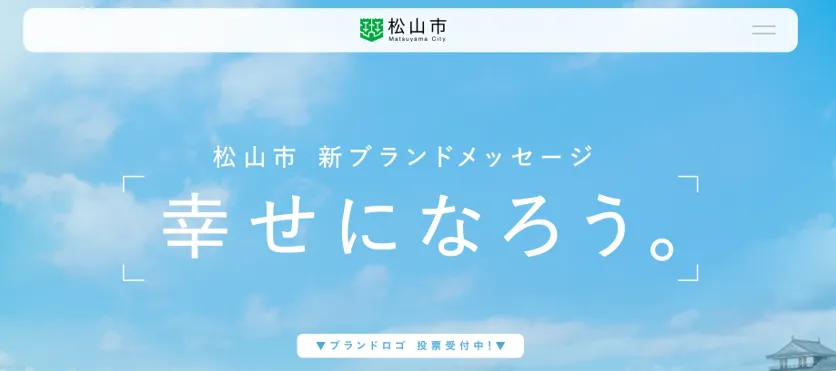 愛媛県松山市では、全国的に認知される都市を目指し、「第2期 松山市都市ブランド戦略」を策定しています。この一環として、新しいブランドスローガンが「幸せになろう。」に決定し、現在、新ブランドロゴの選定に向けた投票を全国から受け付けています。
