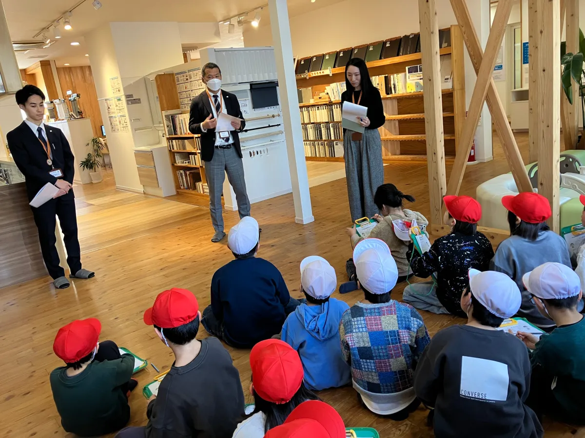当日は、地元の小学生たちがショールームを訪れ、地元での仕事についてのインタビューや体験を通じて、様々な学びを得る機会が提供されました。特に「お仕事インタビュー」では、子どもたちからの熱心な質問が飛び交いました。子どもたちは「お仕事をしていて良かったことは何ですか?」や、「嬉しかったのはどんな時ですか?」といった質問をして、スタッフたちは家づくりを通じてお客様の笑顔を見ることの喜びや、地域を支える胸の内を語りました。