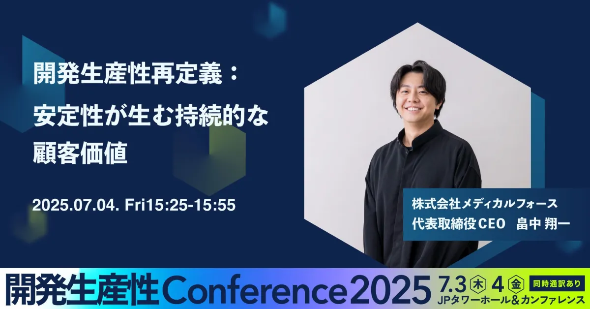 2025年の7月、東京のJPタワーホール&カンファレンスで開催される「開発生産性Conference 2025」に、株式会社メディカルフォースの代表取締役CEOである畠中翔一が登壇することが決定しました。このカンファレンスは、ソフトウェア開発の変革期を迎え、エンジニアや経営層など多様な参加者が集まる重要なイベントとなります。