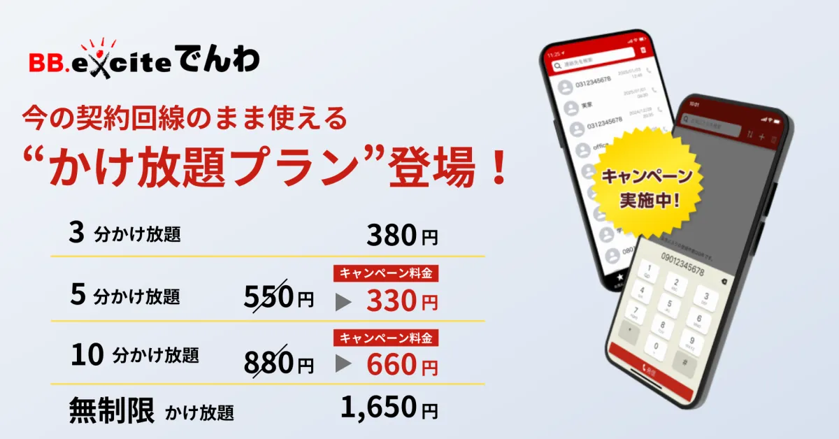 エキサイト株式会社は、2025年2月12日(水)に音声通話が半額になる新しいプラン「BB.exciteでんわ」の提供を開始します。これにより、今までの携帯電話契約をそのままにしてお得なかけ放題プランへ簡単に乗り換えることができるようになります。ドコモ、au、ソフトバンクのキャリアを利用している方も、この新サービスを利用すれば、通話料の節約が可能です。