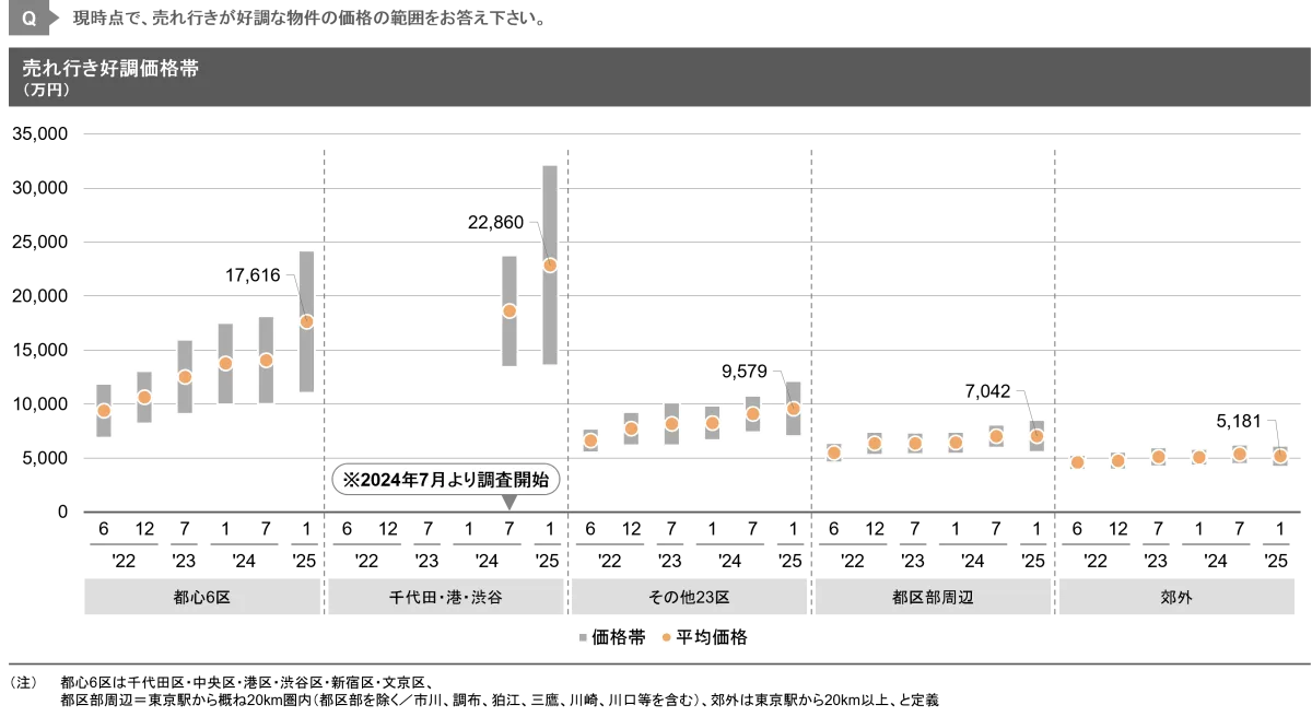 一方、戸建市場では価格帯ごとに異なる傾向が見られました。特に8,000万円以上1億円未満の価格帯では、上昇傾向が続いているものの、8,000万円未満の価格帯ではやや下落傾向が認められています。これにより、消費者の購入決定行動にも影響を与えていることが考えられます。