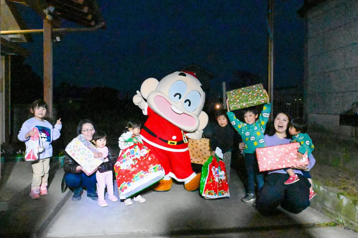 訪問を受けた家族は、ぼんちくんサンタからのプレゼントに心から感謝し、子どもたちの笑顔が何よりの贈り物であることを実感しました。プレゼントを受け取った子どもたちは、玩具や文房具など、多様な品々に目を輝かせ、心に残るクリスマスの思い出が作られたことでしょう。このように地域の名物キャラクターが直接訪問することで、子どもたちにとって特別な体験になることが伝わります。